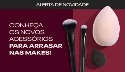 Para complementar o uso dos produtos de maquiagem, a Vult também oferece uma linha de acessórios. Entre eles, destacam-se os pincéis para diferentes funções, como aplicação de base, pó, blush e sombras, facilitando a construção da maquiagem e garantindo um acabamento mais preciso e profissional no dia a dia.