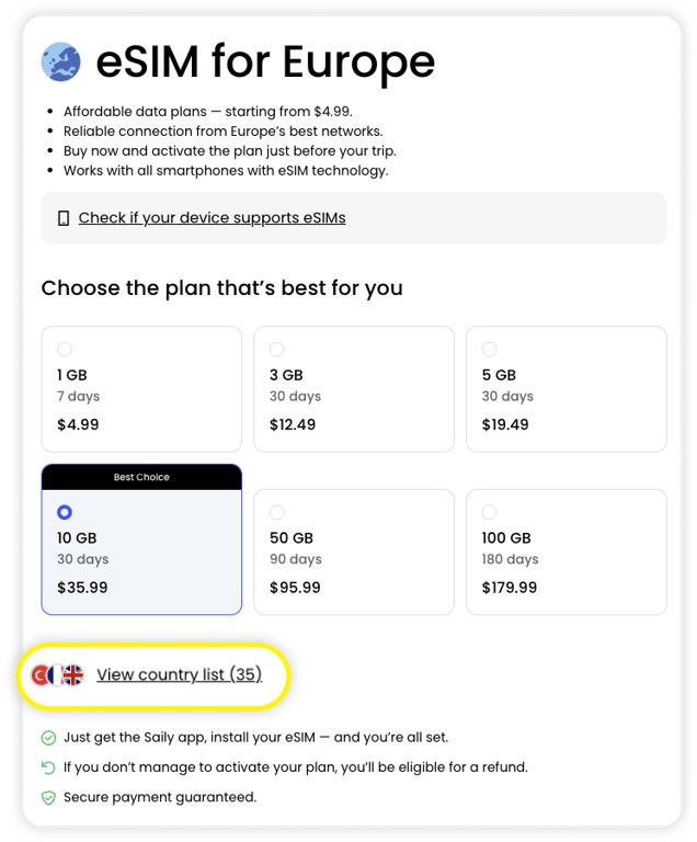 Saily: Europe eSIM data plans starting from about US$4.99